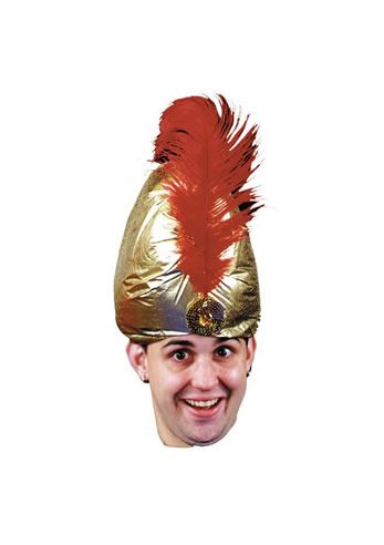 Turban Gold With Plume - Turban with plume and simulated jewel pendant attached. One size. .
