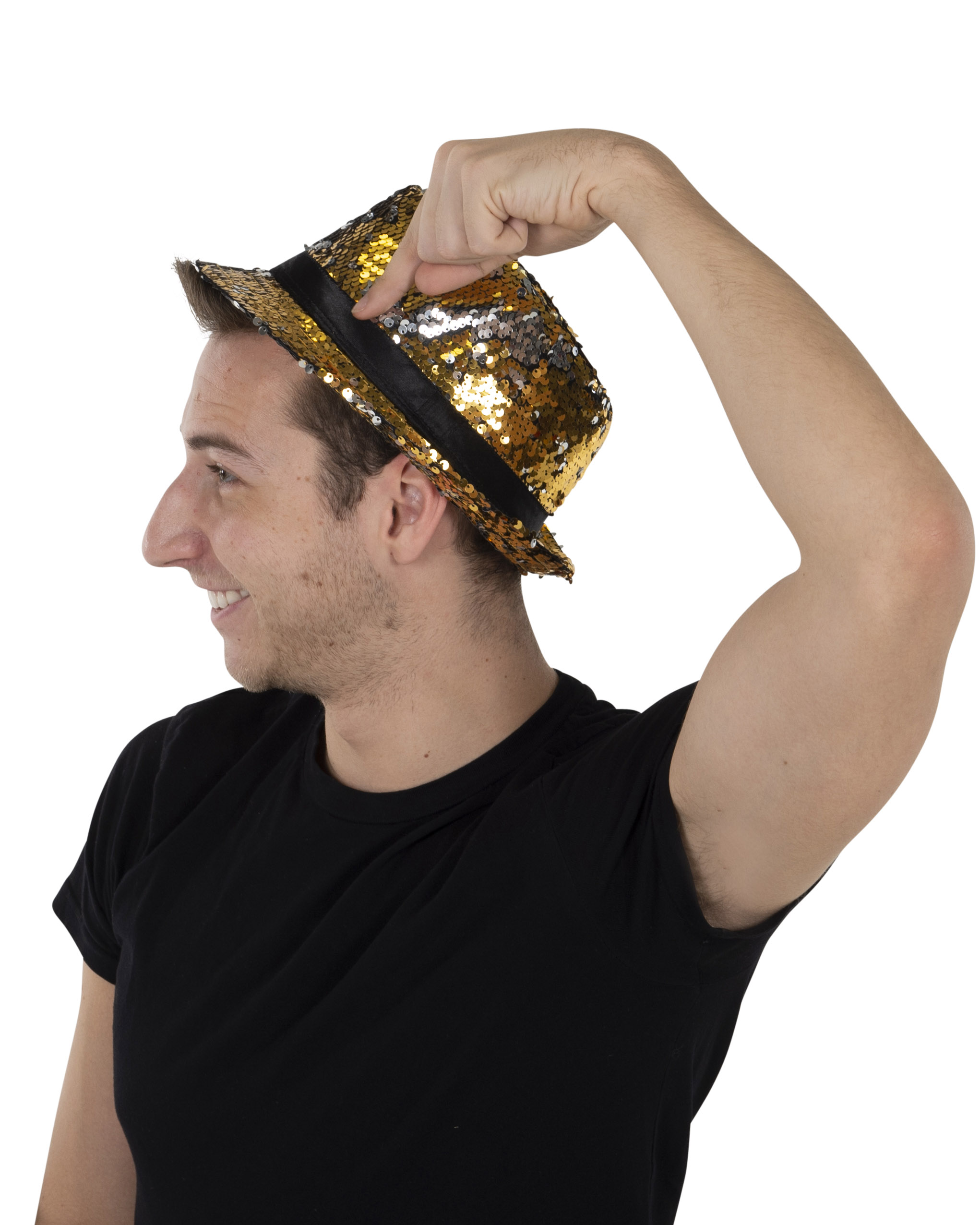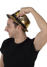 Sequin Party Fedora Gold Hat - The fedoras comes in many styles and attractive colors. From solids, stripes, weaves and checkered prints, this fedora will get compliments coming your way. Dress up any attire with this hat and see yourself liven up the party! This soon to be favorite costume fedora features a jaunty brim that is turned down in the front. The hat also features a pinched crown. The hat is made with durable material and is designed to be comfortable to wear. Does not include shirt.