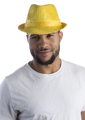Yellow Sequined Unisex Fedora Hat - This product includes fedora hat. Does not include shirt. The fedora will get compliments coming your way. Dress up any attire with this hat and see yourself liven up the party. This one size fits most hat makes a great accessory for your costume.