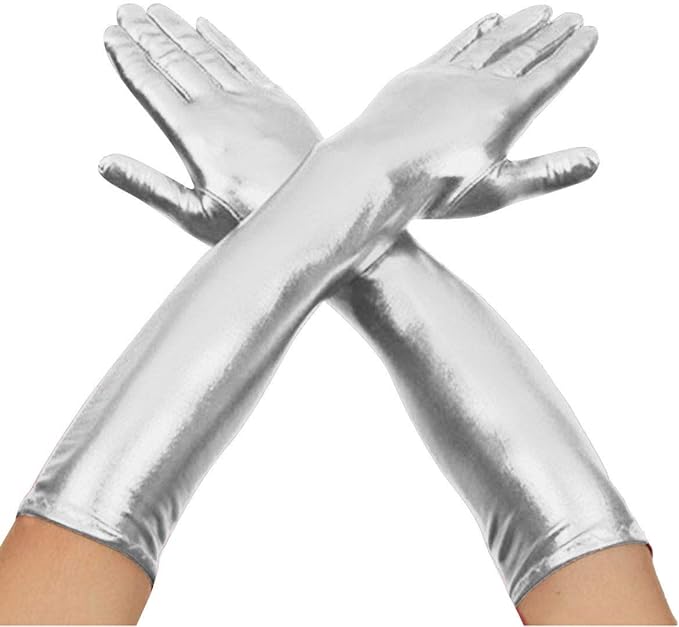 Women Silver Metallic Gloves - This product includes long metallic silver gloves.