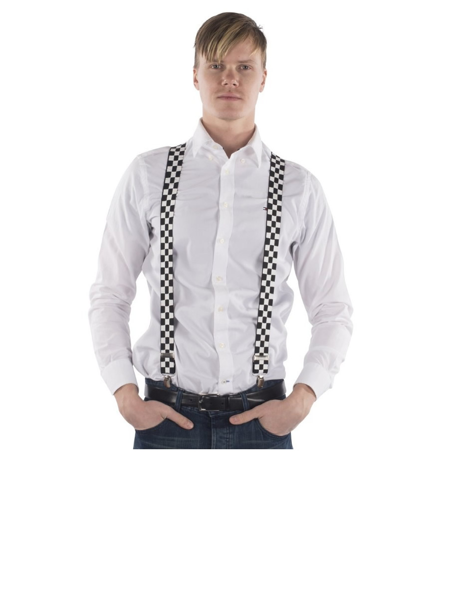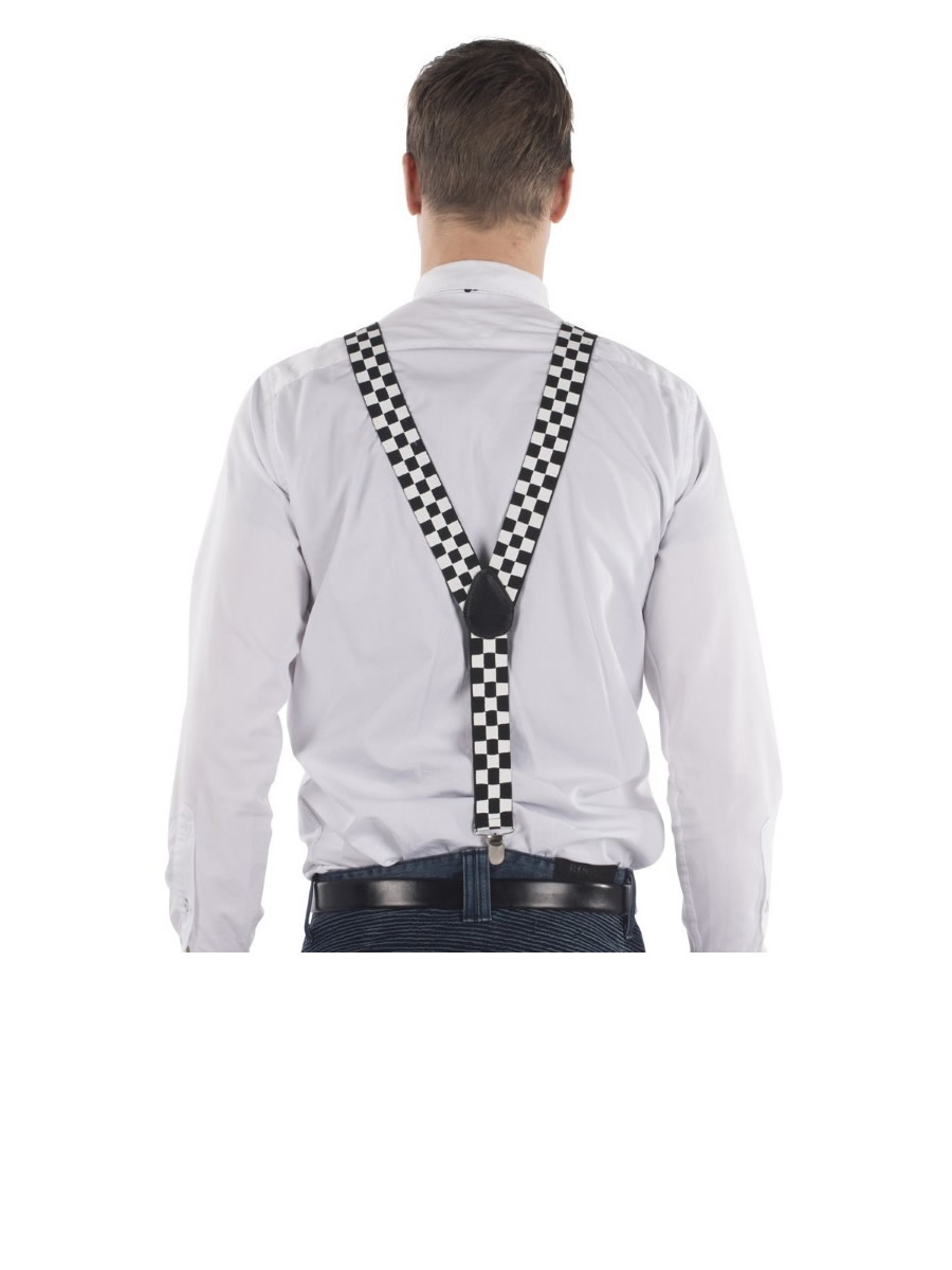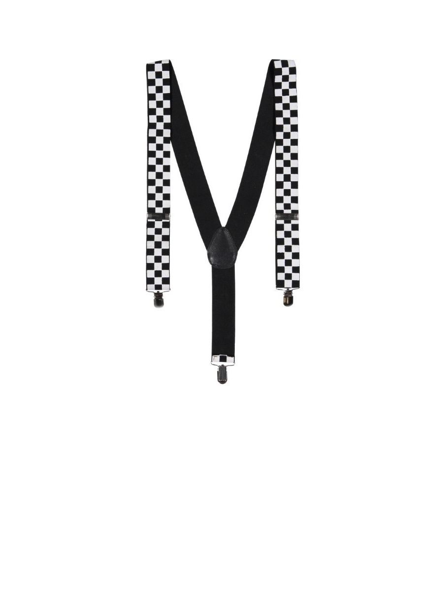 Black And White Checkered Unisex Suspenders - This product includes suspenders. Does not include shirt, pant, belt. The black and white checkered suspenders are adjustable to fit all. Great for men, women, and teens alike. The suspenders clip onto your pants/trousers with silver-colored clasps. The suspenders are made with quality material for the utmost durability and comfort. The straps of the suspenders measure 1.25" in width and measure 23" – 37" in length.