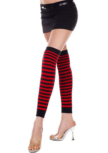 Striped Acrylic Thigh High Leg Warmers Red Black - Striped acrylic thigh-high leg warmers in red and black. Soft, warm, and stretchy for a comfortable fit. Perfect for costumes, festivals, dance, or winter styling. It does not include Shoes and Shorts..