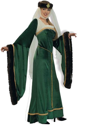 Noble Lady Women Renaissance Costume - My Lords and Ladies, it's the finest in detail, premium quality!. This designer costume includes hat with emblem and veil, long length dress with fur trim, beads accent on the top, lined sleeves with marabou trimmed and corded belt. It does not include shoes.