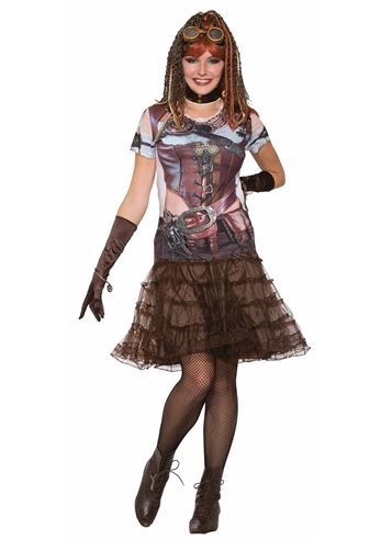 Steampunk Woman 3D Shirt - This product includes 3 dimensional detailed character printed tee. It's a costume in an instant. Does not include Wig, googles, gloves, net tights and shoes.