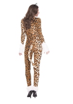 Furry Feline Woman Costume - This costume includes Leopard print catsuit with marabou trim cat ears, choker and detachable tail. This is made of polyester and elastane. Does not includes shoes. Complete costume to complete your sassy look on this Halloween .