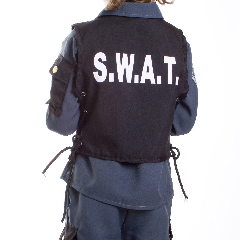 SWAT Men Costume - The S.W.A.T. costume is a great gift for anyone you wanna delight. With the shirt, swat vest, pants, and cap you will easily slip into your heroes role. Spend hours of pretend play in this authentic costume.The SWAT costume is authentically designed the vest featuring pockets and SWAT written on the front and back. The pants comes with 2 pockets with attached straps and features an elastic waistband for an easy and comfortable fit. Does not include shoes, nightstick, handcuffs.