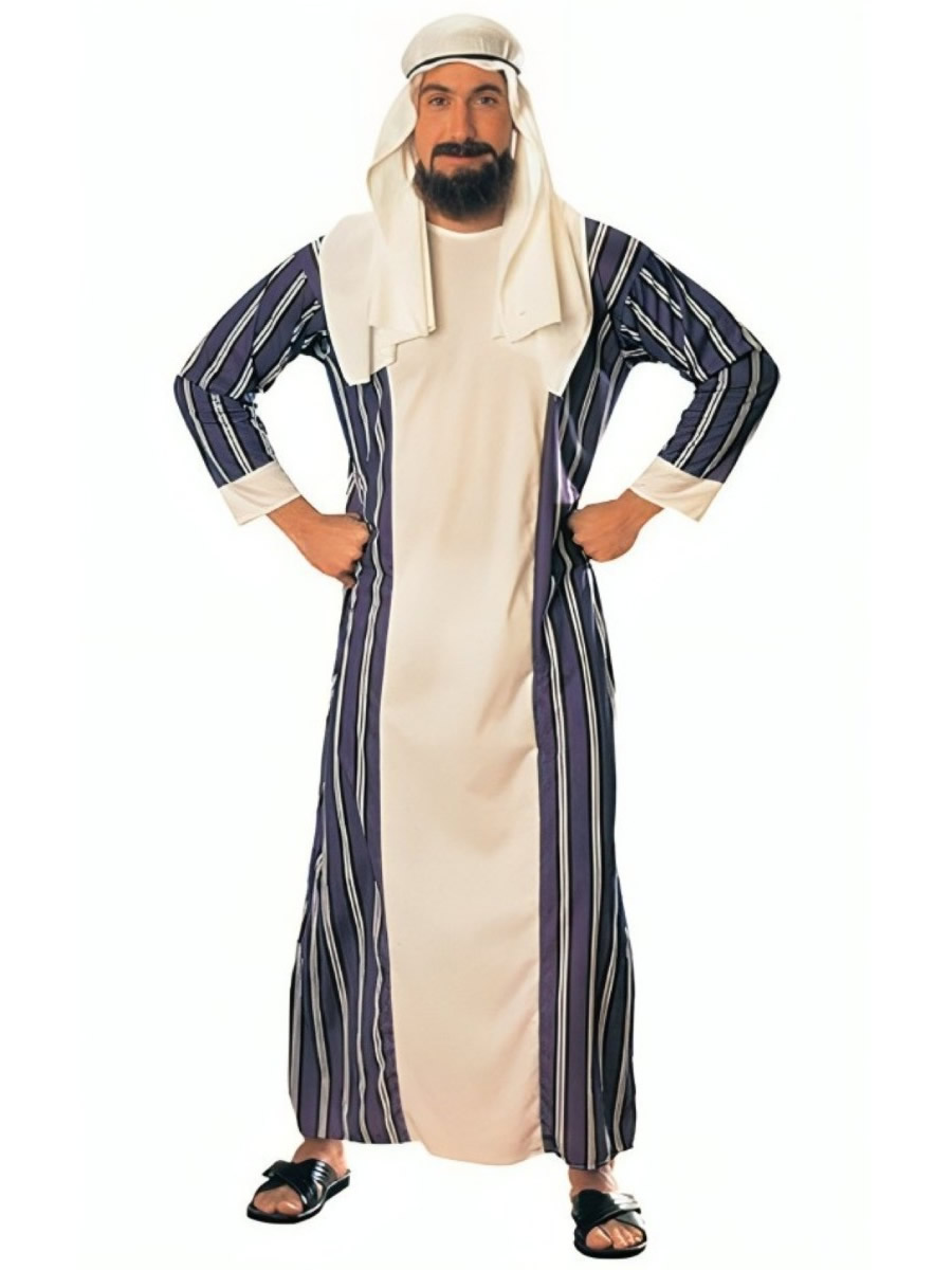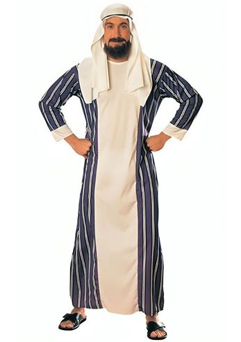 Sheikh Men Arab Costume - This product includes arab style headpiece and Robe. Does not include shoes, beard and mustache. Available in standard size.