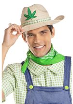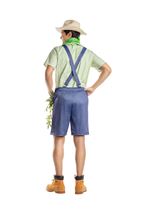 Feelgood Farmer Men Costume - The Mens Feelgood Farmer costume brings charming country vibes with its denim-style shorts overalls featuring green and white gingham details. Paired with a matching gingham shirt with an easy Velcro back closure, the outfit includes a pocket handkerchief with playful leaf accents, a rustic farmers hat, and a classic bandana. This cheerful ensemble is perfect for themed parties, festivals, or anytime you want to channel the feel-good spirit of the farm!.