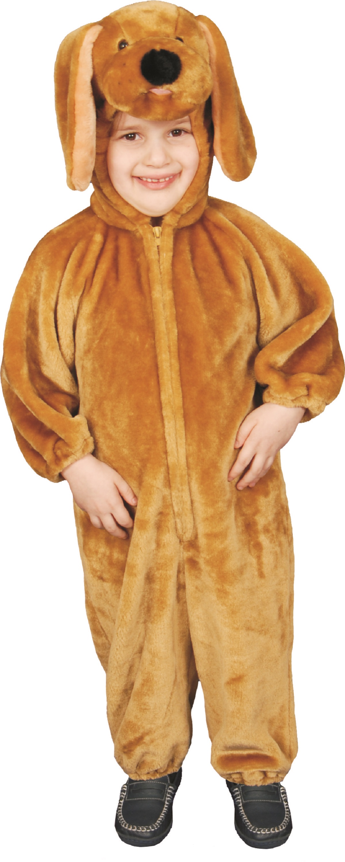 Brown Puppy Unisex Child Costume - This is pawfect for your little one! Surprise him and see the delight on the on his face! The costume will become a family favorite! The caramel colored onesie is easy and practical. The comfortable one piece is designed with a tail, hood with all puppy features, and cute floppy ears. Our costumes are made of the finest quality material for utmost durability. The puppy costume is made to last through all adventures. The puppy costume is great for Halloween, themed parties and photoshoots. Liven up the party with these adorable and irresistible mascots! Does not include shoes.