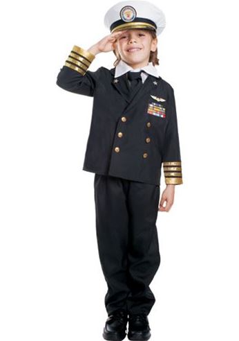 Navy Admiral Boys Costume - Have your child command his boat with passion. Surprise him this Halloween with this authentic-looking admiral costume. Includes Jacket, pants, hat, and necktie, which makes him look like a true ship captain. Compliments guaranteed! The black double-breasted admiral jacket closes with gold buttons, designed with star collar pins, award medals, and gold hash marks. Also includes a white captain cap designed with black and gold. The costume will have your son running around the house, taking control of every situation! The navy admiral costume is great for Halloween, dress ups, role play, themed parties and, practically everywhere. Does not include shoes.