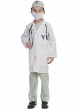 Deluxe Doctor Unisex Costume - The doctor costume will have your child walking around the house taking care of everyone. With the complete set of a shirt, coat, pants, mask, hat and, stethoscope, your little one will easily slip into the role of his hero. Let his dream come true! The Dr. coat and hat come with an embroidered medical insignia. Many pockets are included so that he can store all the important tools. The mint green pants feature an elastic waistband for an easy and comfortable fit. Does not include shoes.