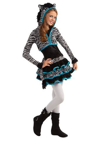 Zebra Tween Girl Costume - This product includes dress and zebra print hoodie. Does not includes tights and shoes..